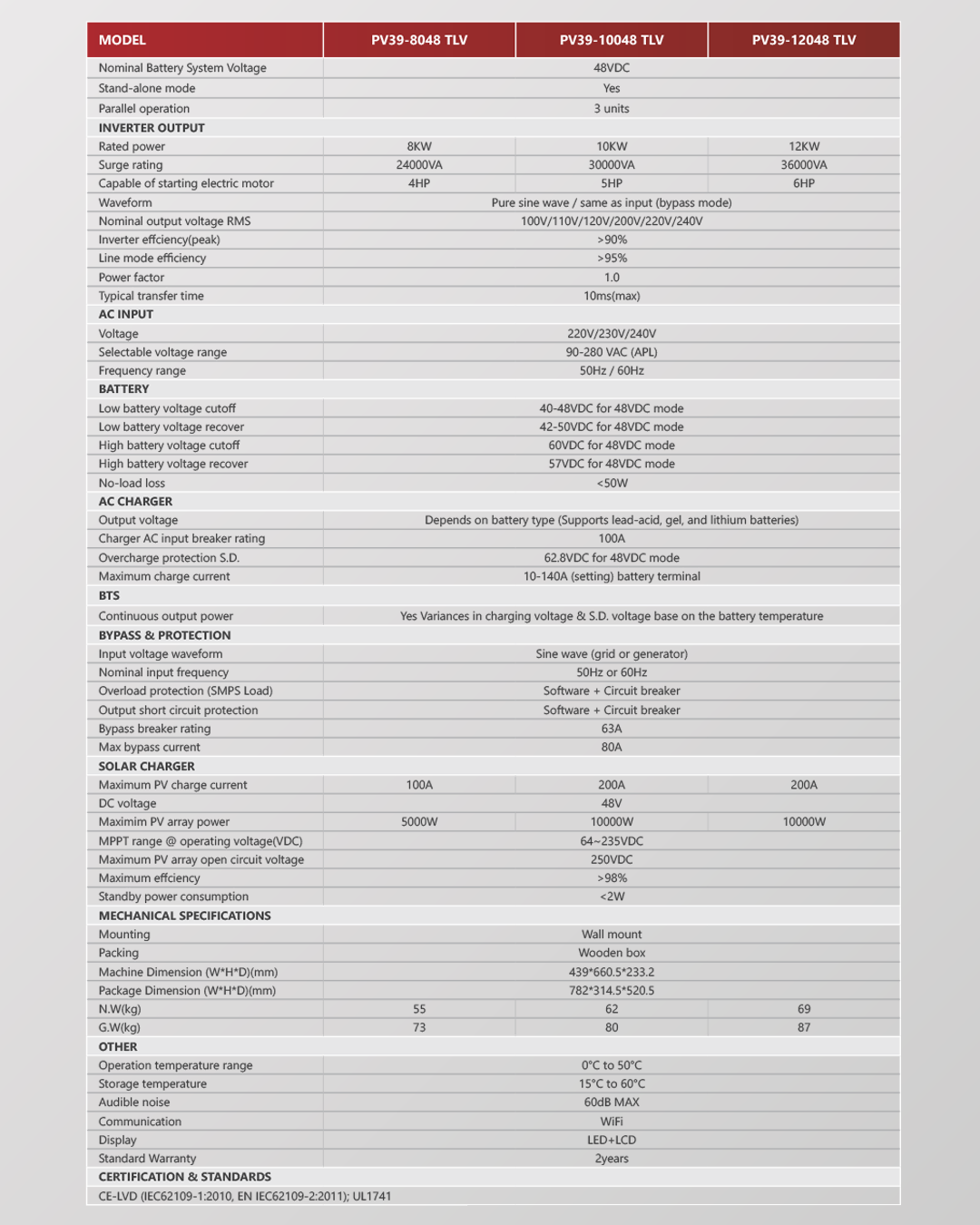 INVERSOR / CARGADOR 12KW PV39-12048 TLV – MUST